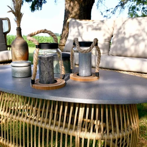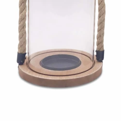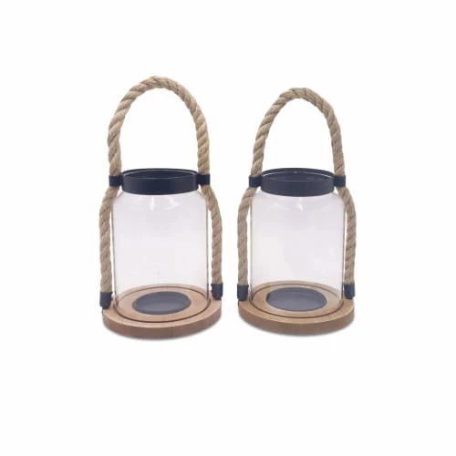 Ce duo de lanternes donneront un esprit maritime à votre décoration. Aussi bien pour l’extérieur que pour l’intérieur, elles sont faites de matières naturelles : tube en verre arrondi, structure en bois, socle en fer et anses en corde s’accordent parfaitement pour créer des photophores contemporains. Sur votre terrasse, elles sublimeront vos soirées d’été en donnant une ambiance cosy grâce à la lumière des bougies (non incluses). Elles se déplacent facilement grâce aux anses en corde, et le tube en verre évite que la bougie ne coule sur vos meubles.