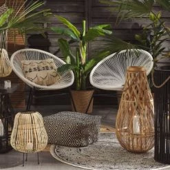 Promo 🔥 Maisons Du Monde Lanternes Et Photophores De Jardin Lanterne En Bambou Noir Et Verre H55 🎉