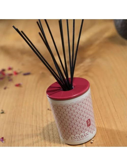 Tiges 22 cm et solution parfumée 100 ml incluses. Coffret 23 x 7.5 x 7.5 cm.
