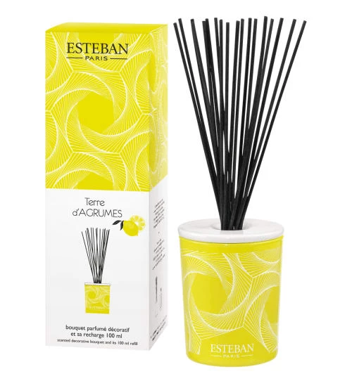 Tiges 22 cm et solution parfumée 100 ml incluses. Coffret 23 x 7.5 x 7.5 cm.