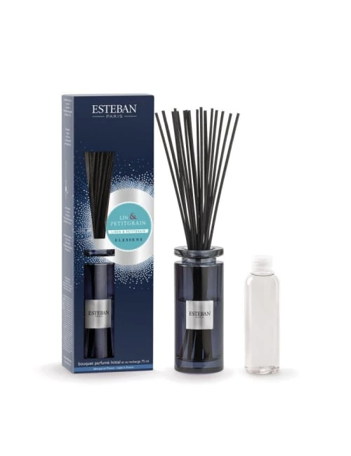 Caractéristiques : – Diffusion à froid permanente- Tiges et parfums rechargeables à l’infini- Flacon 75 ml- Parfum frais aromatique- Dimensions 26 x 8 cm- Alcool végétal sans phtalate