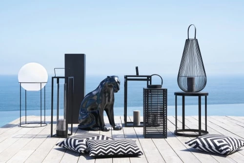À la fois objet décoratif et source lumineuse, la lanterne en métal ELVA possède une structure ajourée aux lignes horizontales.