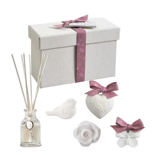 Pour offrir ou vous faire plaisir, découvrez le coffret de parfum d’intérieur Les présents de Mathilde et son irrésistible parfum Rose Elixir, une senteur voluptueuse et envoûtante, née du mariage de la rose, des notes poudrées de la violette et des muscs blancs.