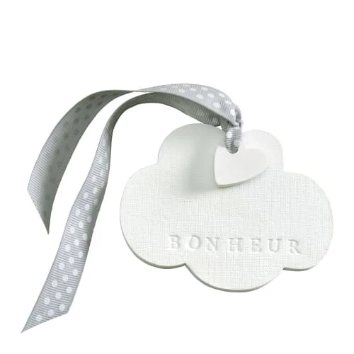 Cet élégant décor en plâtre à suspendre Nuage « Bonheur » apportera la touche finale à votre décoration en laissant un voile parfumé Nounours. Idéal pour parfumer subtilement la chambre de vos enfants.