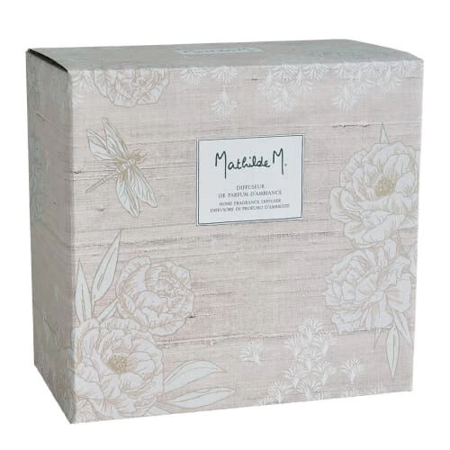Une fois placé dans son vase, la fleur s’imprègne du parfum par capillarité pour le diffuser progressivement dans l’air ambiant. Au contact du parfum, la fleur se teinte légèrement d’une couleur rosée. Ce diffuseur peut également être utilisé avec des tiges de rotin Mathilde M.