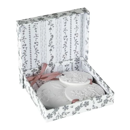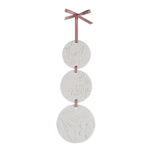 3 décors en plâtre parfumé rond avec ruban parfum Fleur de Thé