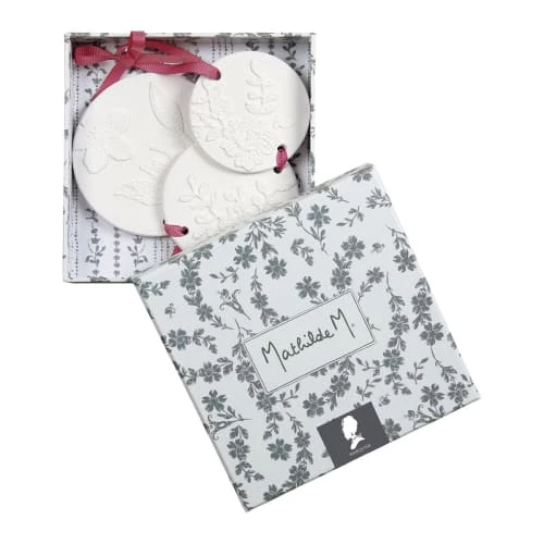 3 décors en plâtre parfumé rond avec ruban parfum Marquise